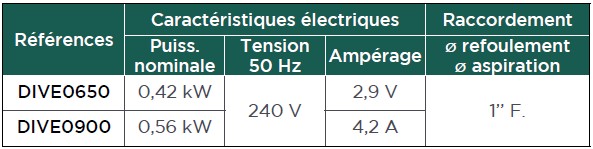 - La pompe Divertron 0900 est une pompe immergée adaptée au pompage d'eaux propres, sans corps dolides ou abrasifs, non agressifs.